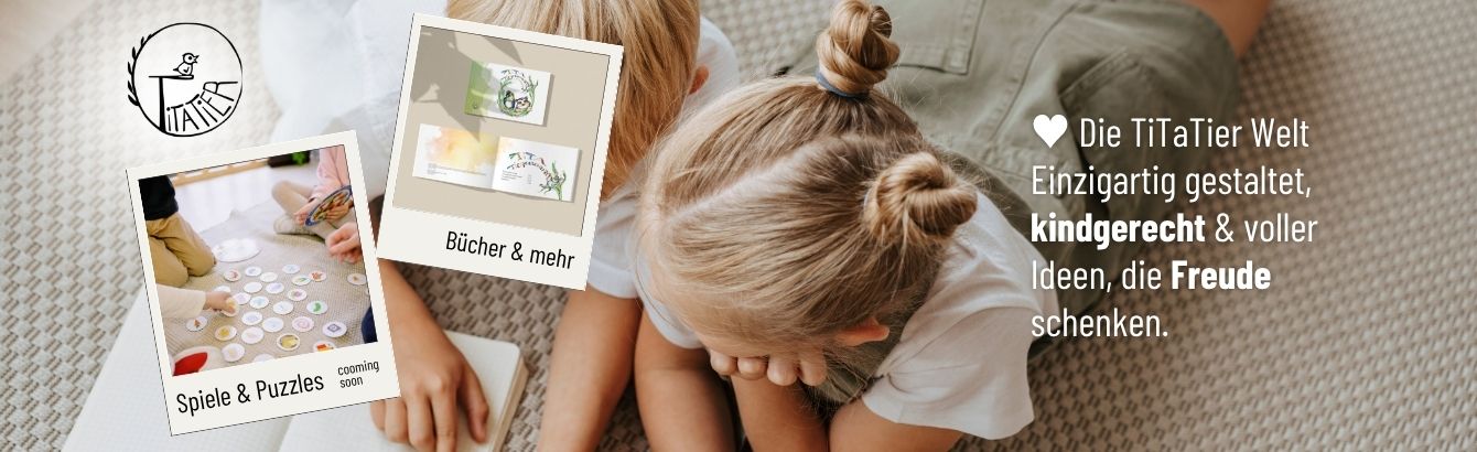 Für Familien und Kinder haben wir mit TiTaTier eine eigene Produktwelt geschaffen. Ob liebevoll illustrierte Kinderbücher, bunte Postkarten oder bald auch kreative Spiele und Einschulungssets – TiTaTier-Produkte fördern Fantasie, Freude und gemeinsames Erleben.